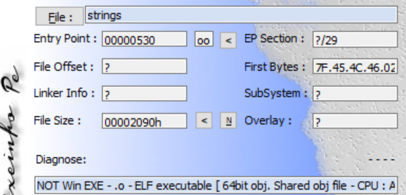 그리고 exeinfo PE를 통해 64bit elf 라는 것도 알 수 있다.