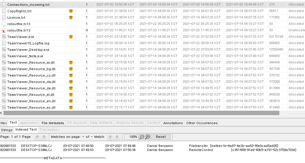 이 문제 파일에서는 2개의 원격 프로그램 TeamViewer와 AnyDesk를 찾을 수 있다.