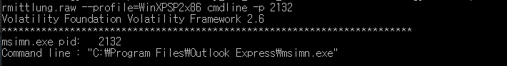 cmdline 플러그인을 사용하면 Outlook Express가 실행되는 부분을 찾을 수 있다.