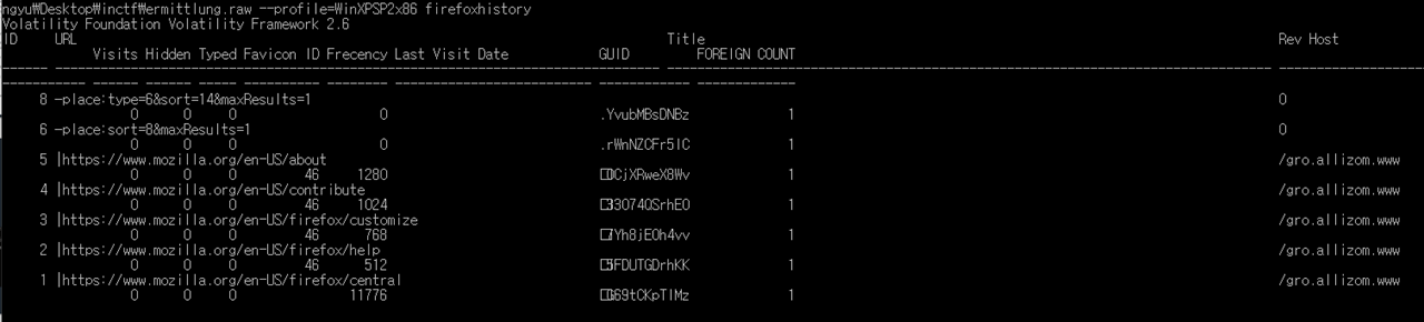 firefox를 사용하였으므로 firfoxhistory를 확인해보았지만, 의미있는 정보는 없다.
