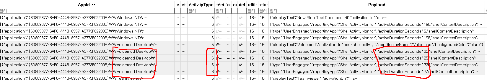 4. 윈도우10 타임라인에서 voice modulator 사용 시간 확인하기