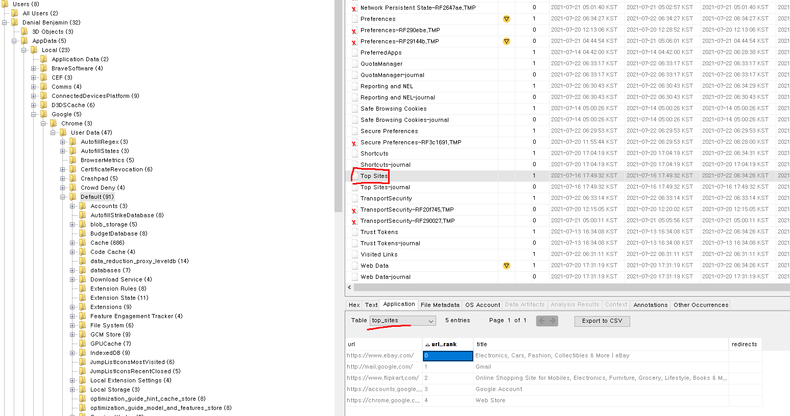 크롬 방문기록을 확인하기 위해 추출하는 History 파일이 있는 위치에 Top Sites라는 파일이 있다.