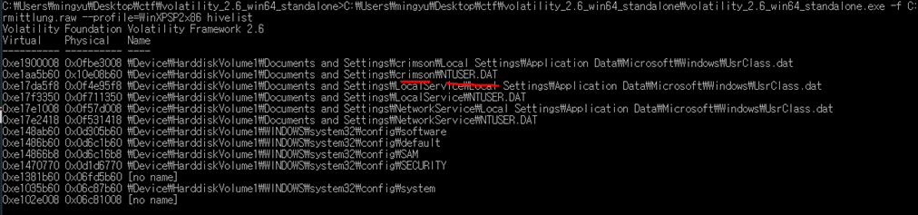 hivelist로 NTUSER.DAT의 주소값을 찾고