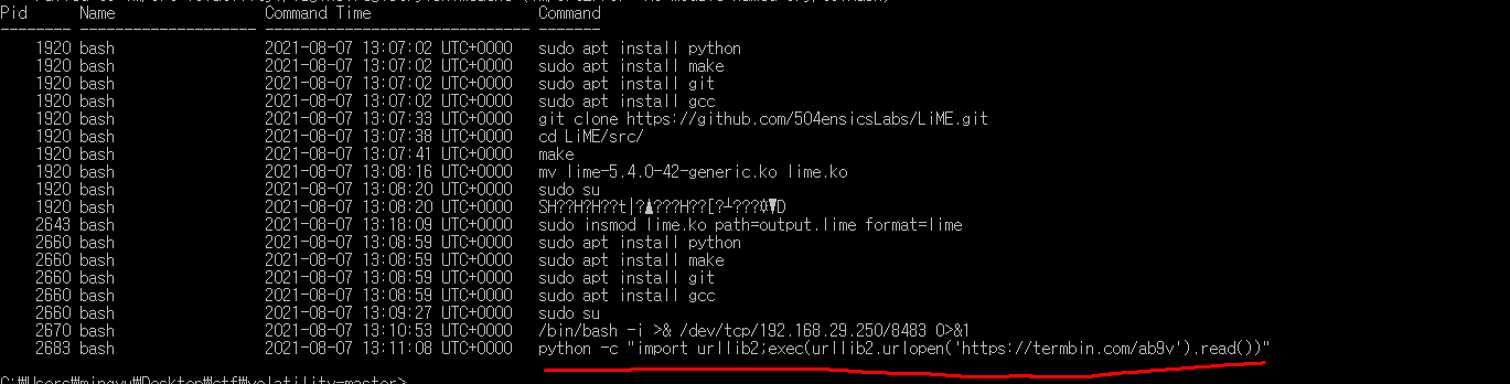 리눅스 메모리 덤프인 lime 파일이 주어진다.